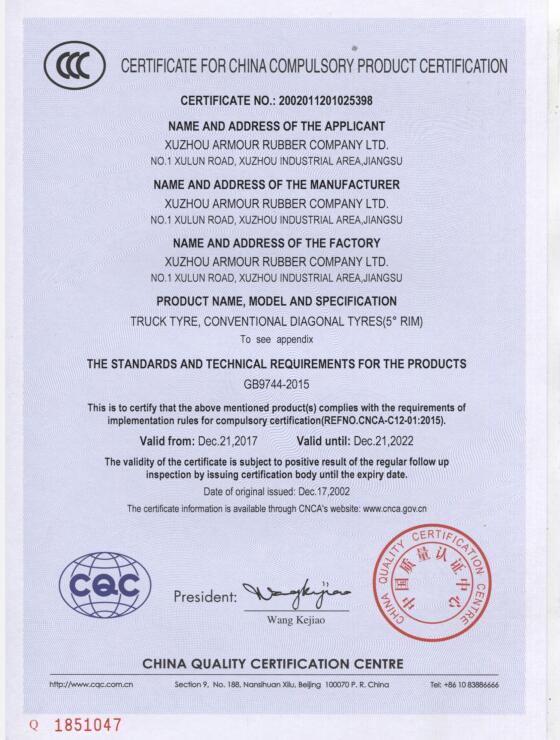 3C證書(shū)-輕型載重輪胎