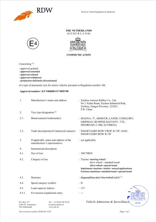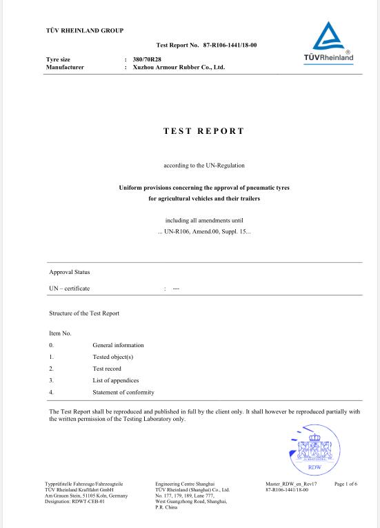 質(zhì)量是企業(yè)的生命,是企業(yè)得以生存和發(fā)展的基礎。公司自2006年創(chuàng )辦以來(lái),徐輪橡膠就是一直對產(chǎn)品品質(zhì)孜孜以求,精益求精。以“質(zhì)量是生命 科技求領(lǐng)先 過(guò)程零缺陷 服務(wù)到永遠”為質(zhì)量方針,徐州徐輪橡膠有限公司建立健全了科學(xué)完善的質(zhì)量保證體系,自2009年起先后通過(guò)了ISO9001-2008、CCC、美國DOT、歐洲E-mark等質(zhì)量體系認證。